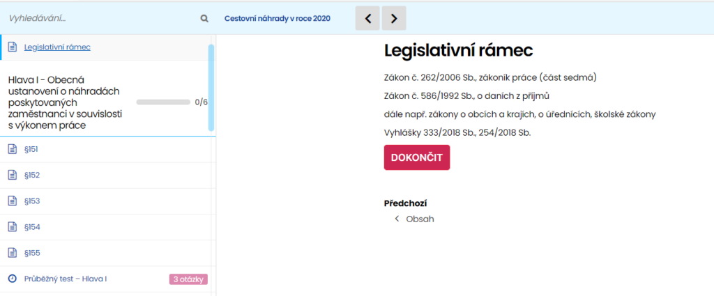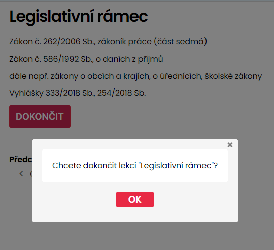 Po prostudování lekce, kliknete na tlačítko Dokončit a následné potvrzení, dokončení lekce, automaticky přejdete na další kapitolu.