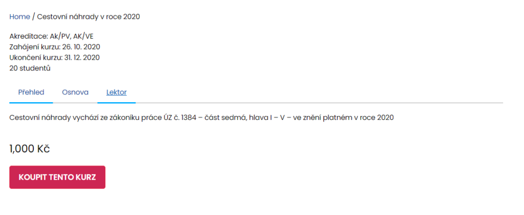 Druhý způsob k přihlášení semináře je po rozkliknutí obsahu školení, kde na konci obsahu naleznete tlačítko Koupit tento kurz.