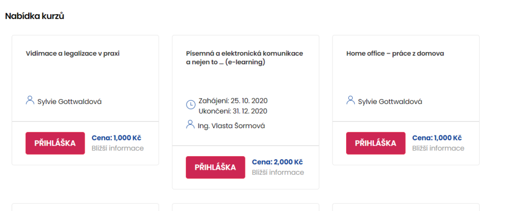 Zobrazí se Vám všechny kurzy, které jsou v nabídce.