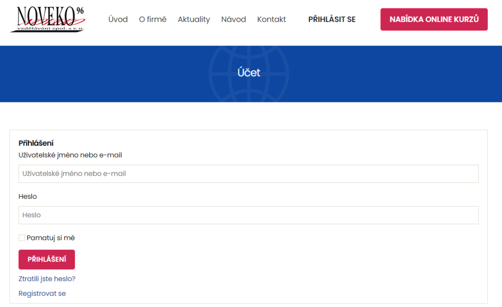 Po kliknutí na tlačítko se Vám opět zobrazí přihláškový formulář, který je stejný jako v první možnosti přihlášení.